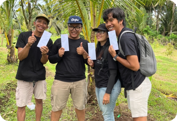 日本の支援者からの応援は、インドネシア・バリ島のカカオ農家に届きます。農家はその支援でカカオを育て、実や皮まですべてを大切に活用します。